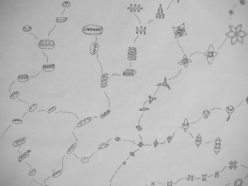 Techniques mixtes sur papier, exemples d'une série de 36 travaux